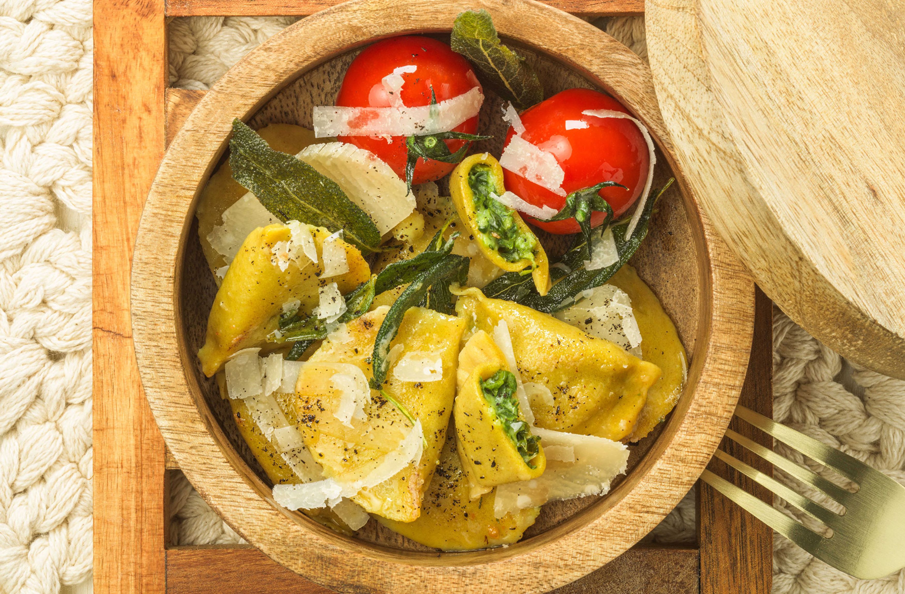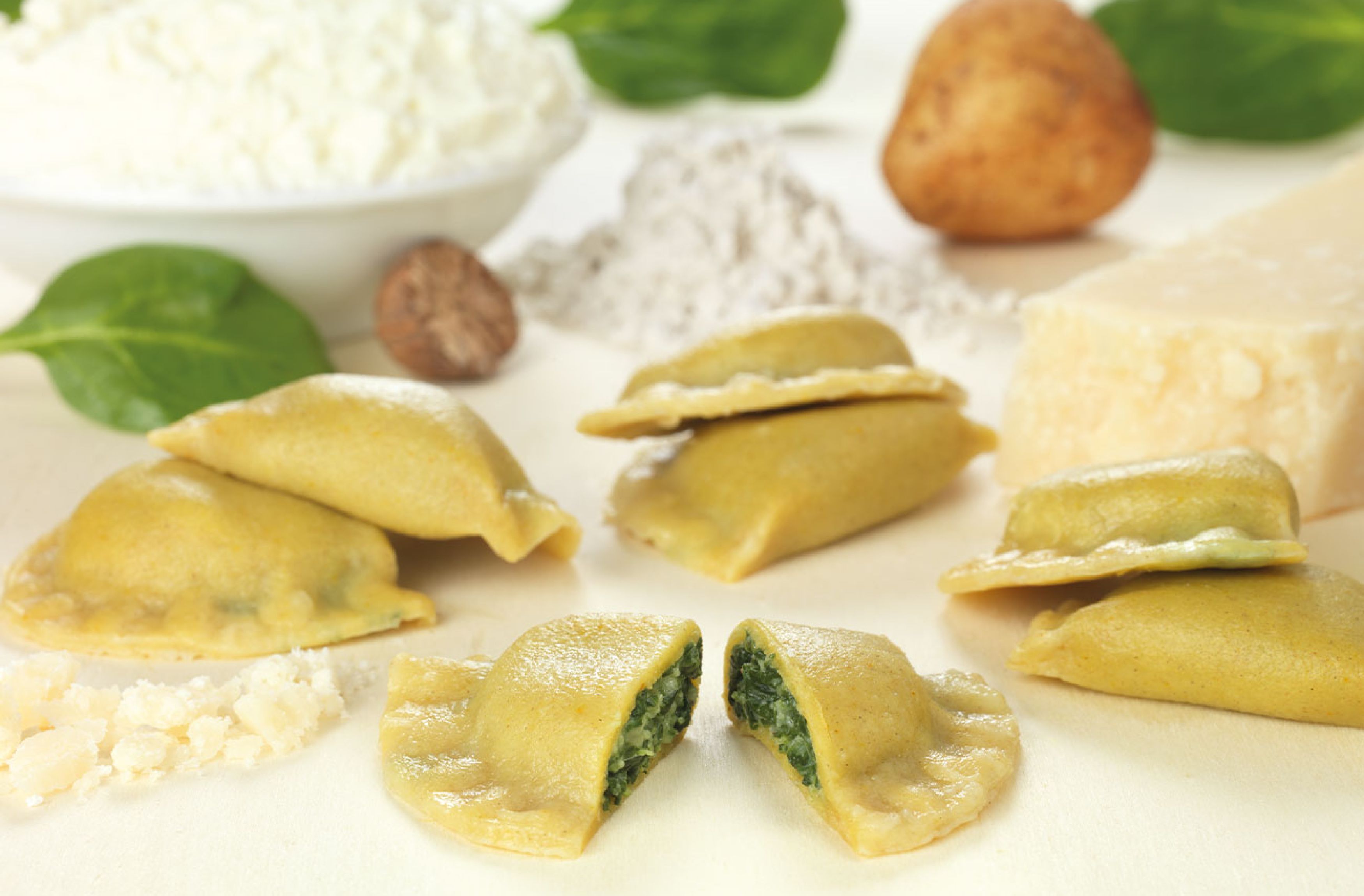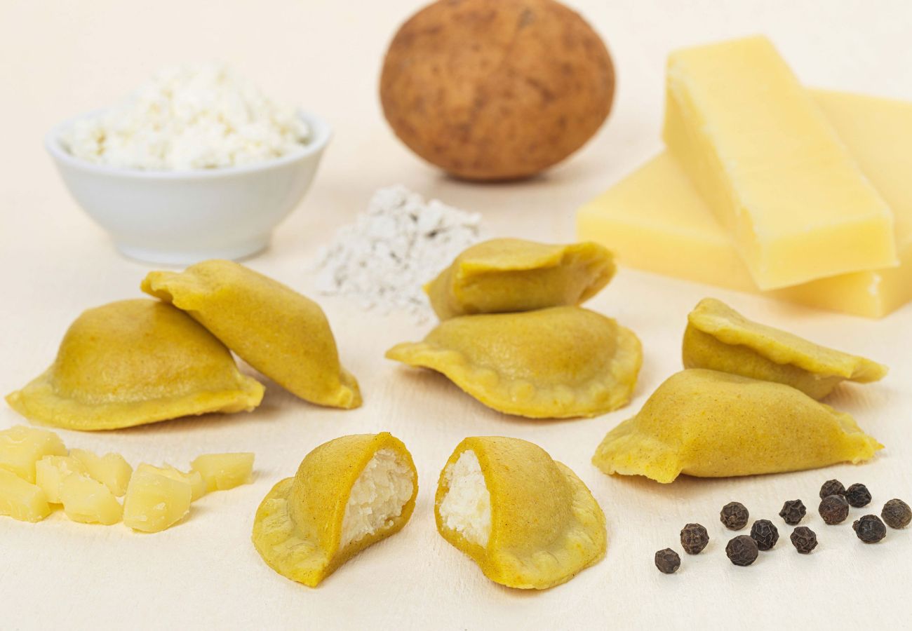 Teigtaschen Südtiroler Art in einem zarten Roggen- & Kartoffelteigmantel mit einer würzigen Füllung aus Blattspinat & Hartkäse