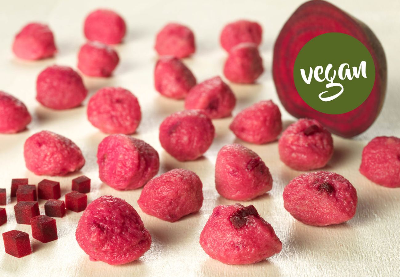 Zarte Kartoffelteigklößchen mit stückiger Rote Beete