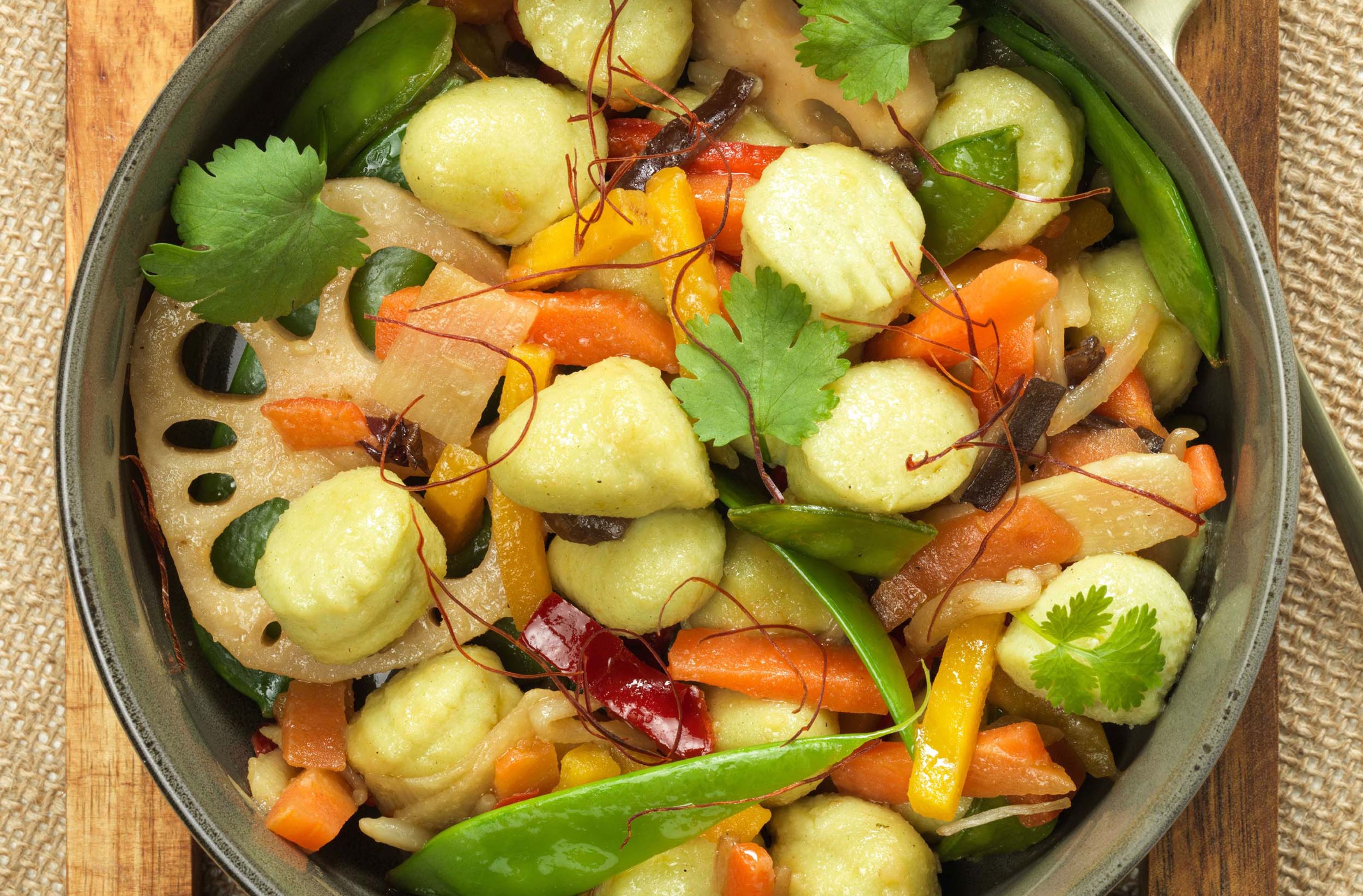 - gebraten mit asiatischem Wok-Gemüse und geröstetem Sesam