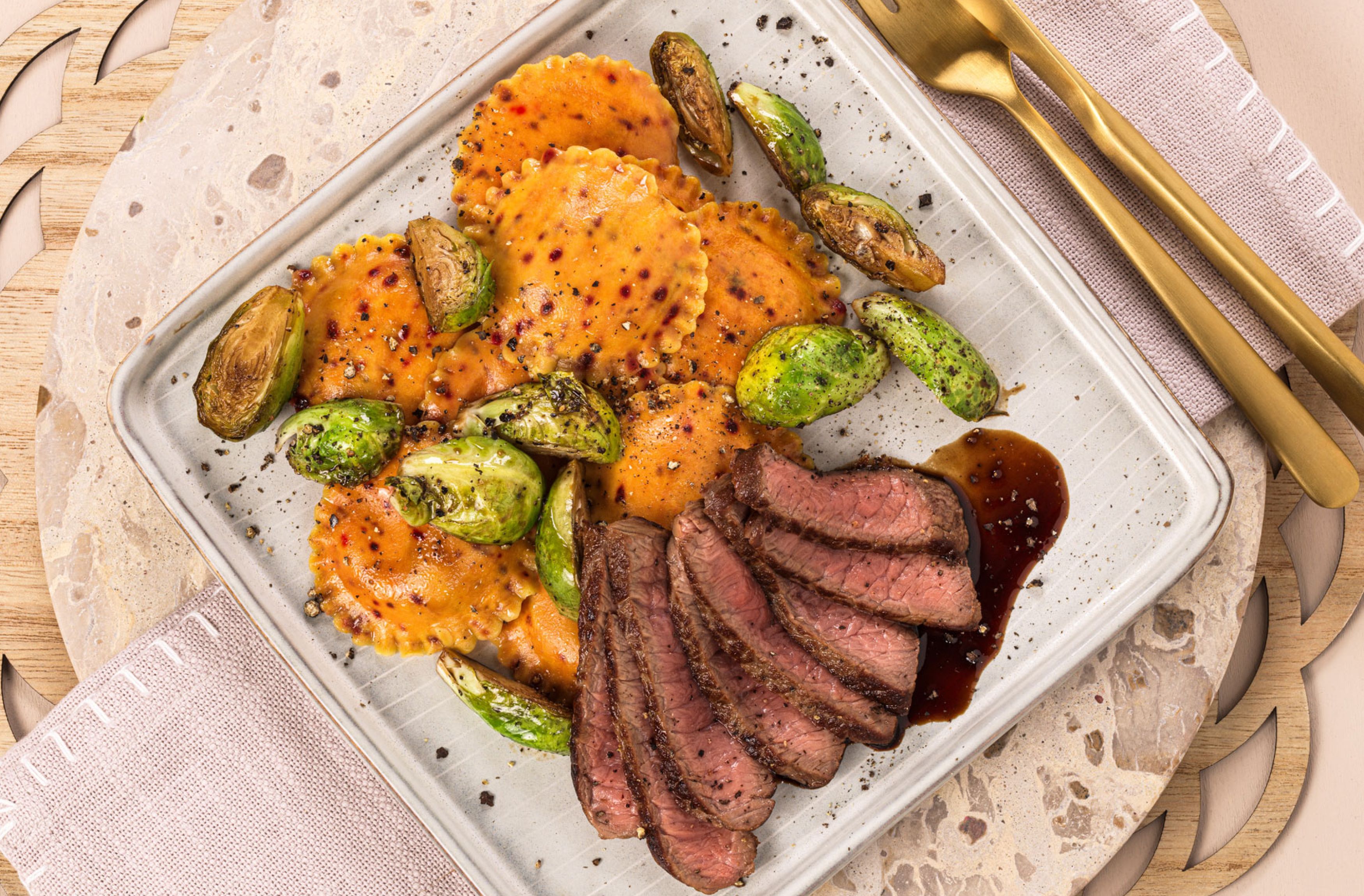 - mit Rehrückenfilet, Wacholderjus und Flower Sprouts