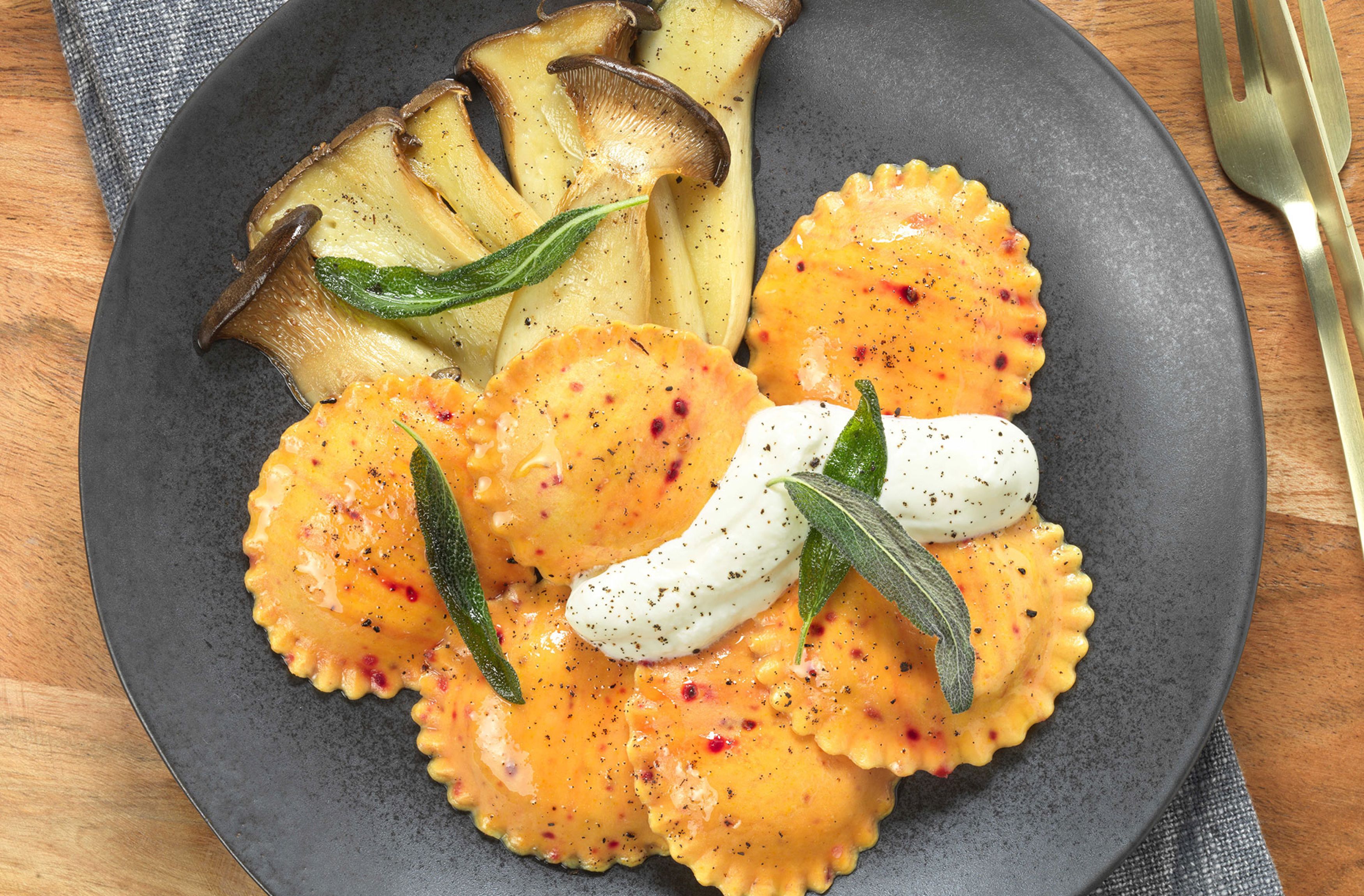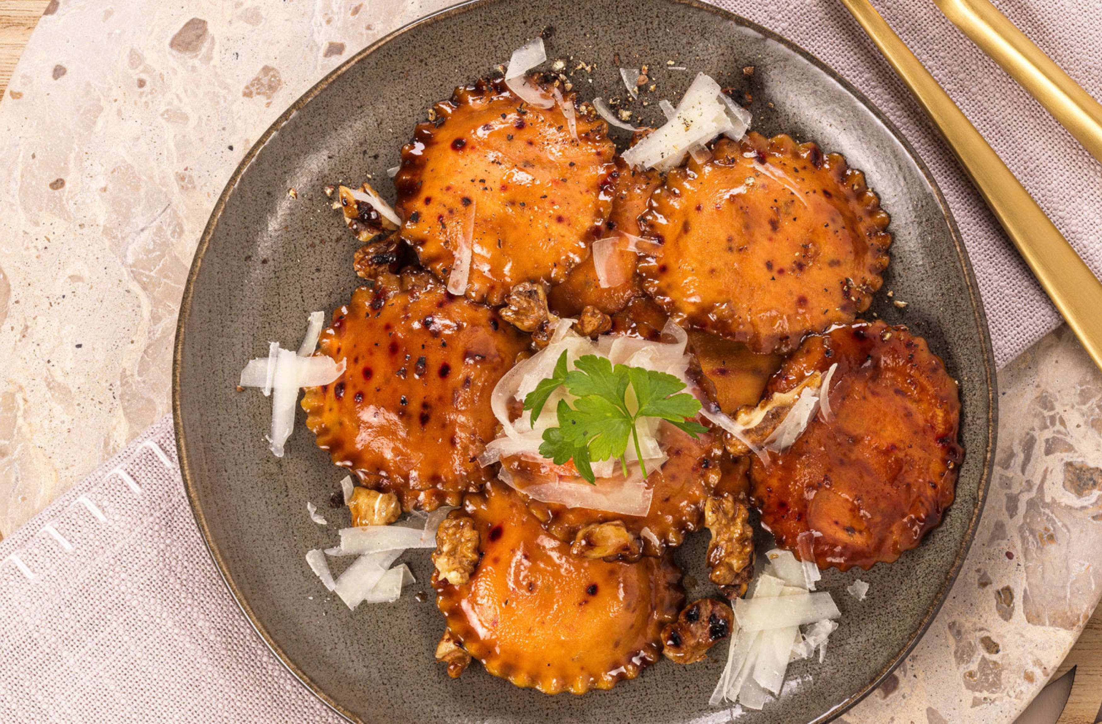 Extra feine Teigware mit einer Füllung aus Amarena Kirschen und Pecorino