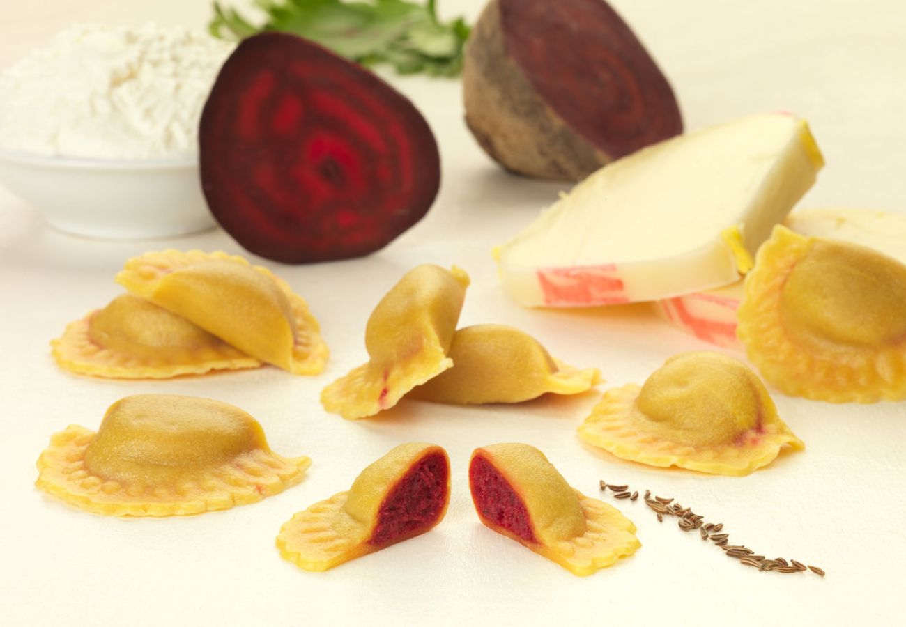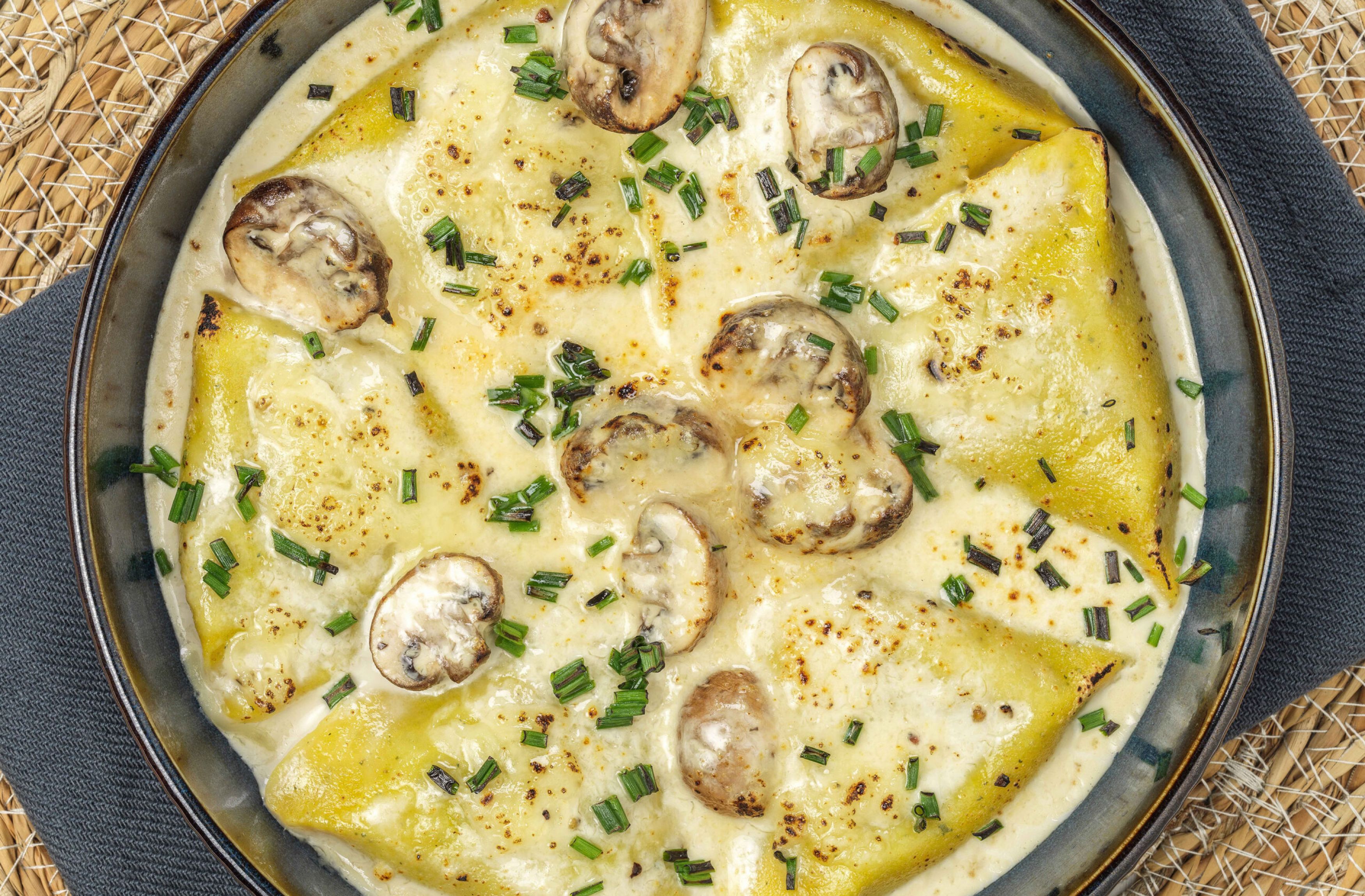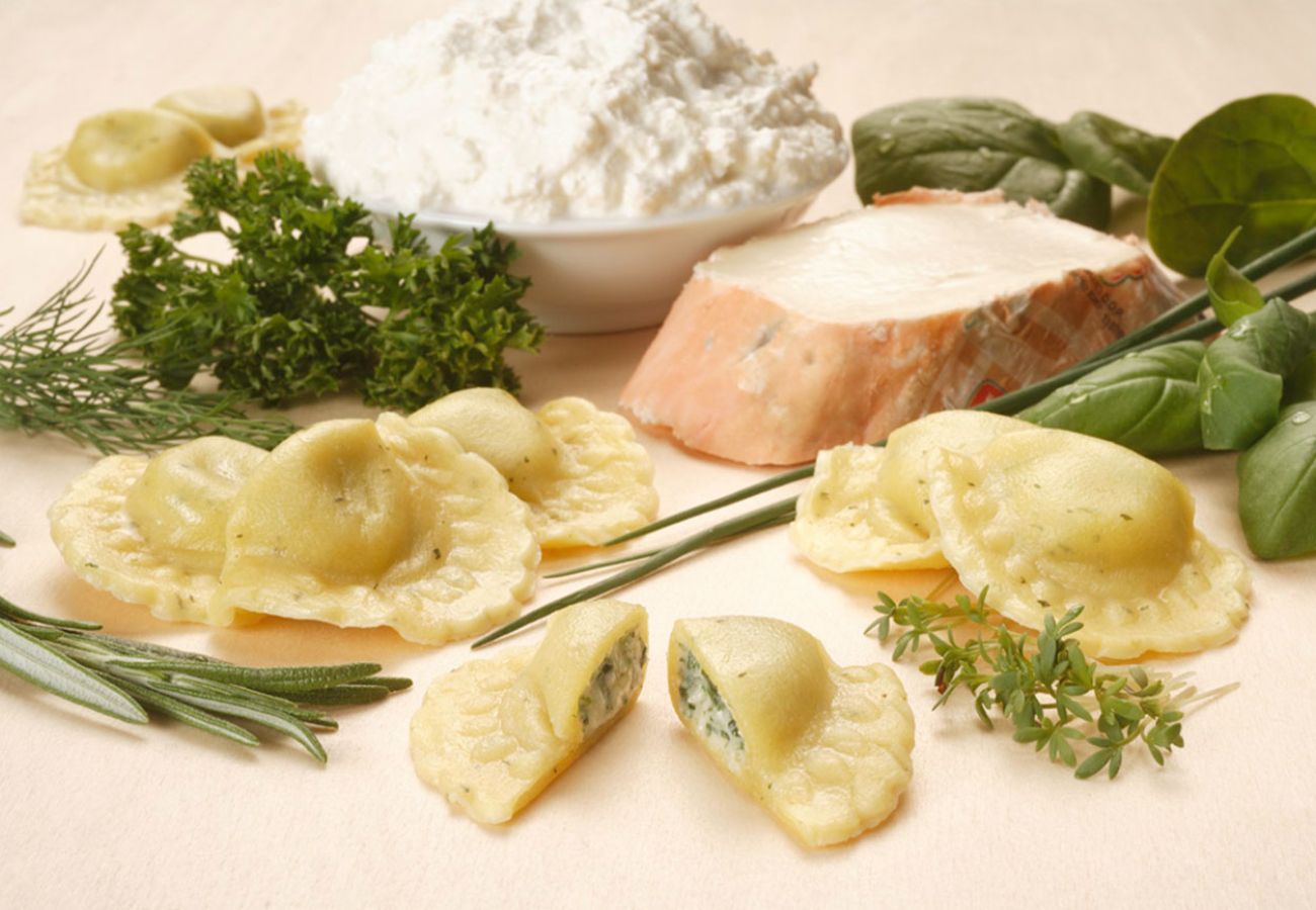 Große Teigtasche im Dreiecksformat mit feinwürzigem Büffel-Ricotta und Blattspinat
