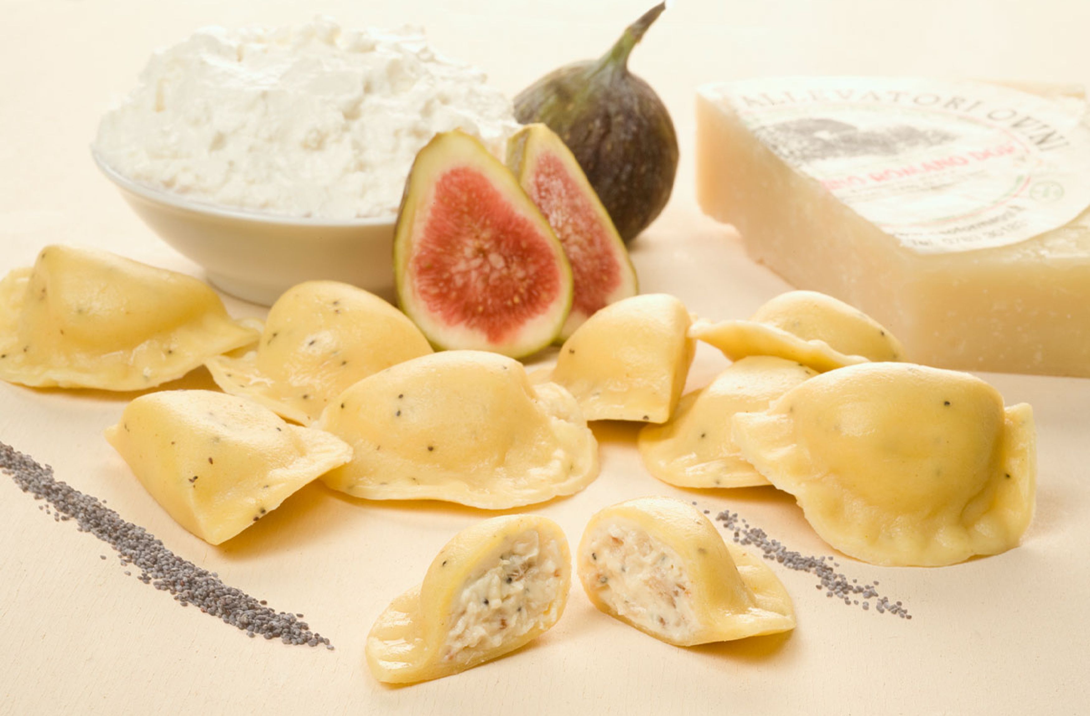 Mit einer cremig-stückigen Füllung aus würzigem Schafskäse und lieblich-süßer Feige im Blaumohnteig