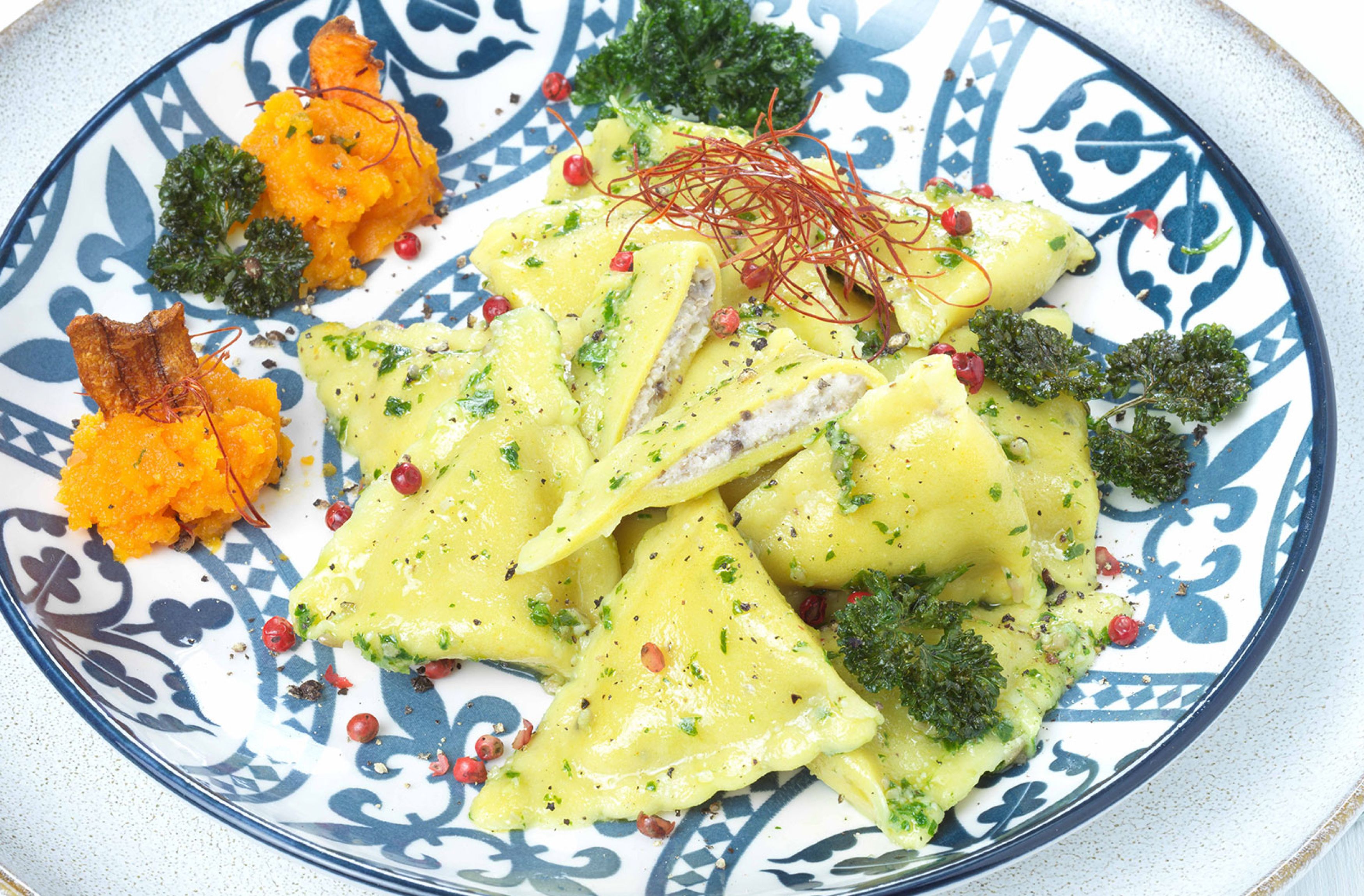 - mit einem Kürbisragout und geröstetem Rosmarin