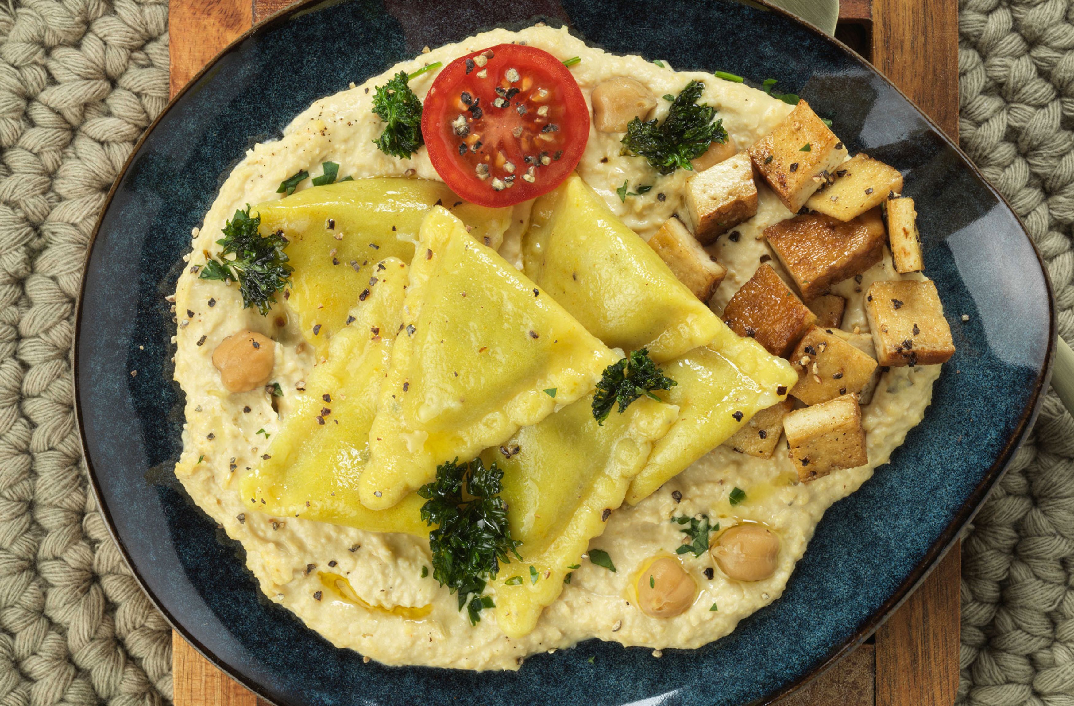 - mit geräuchertem Tofu, Petersilien-Pesto und Karottenchips