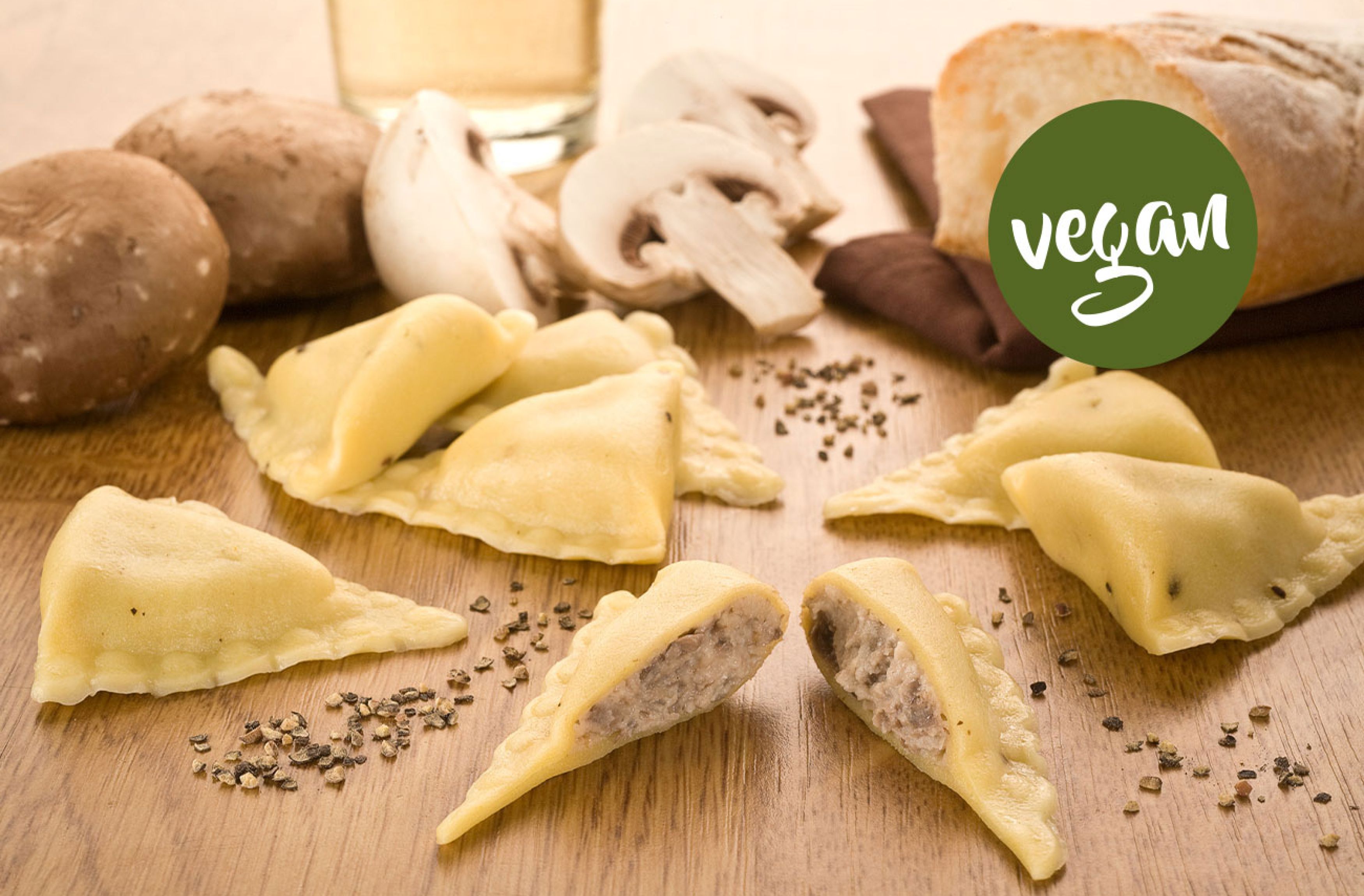 Mit einer cremig-stückigen Füllung aus Champignons, gebratenen Portobello- Pilzen und grobem Pfeffer im Teigmantel
