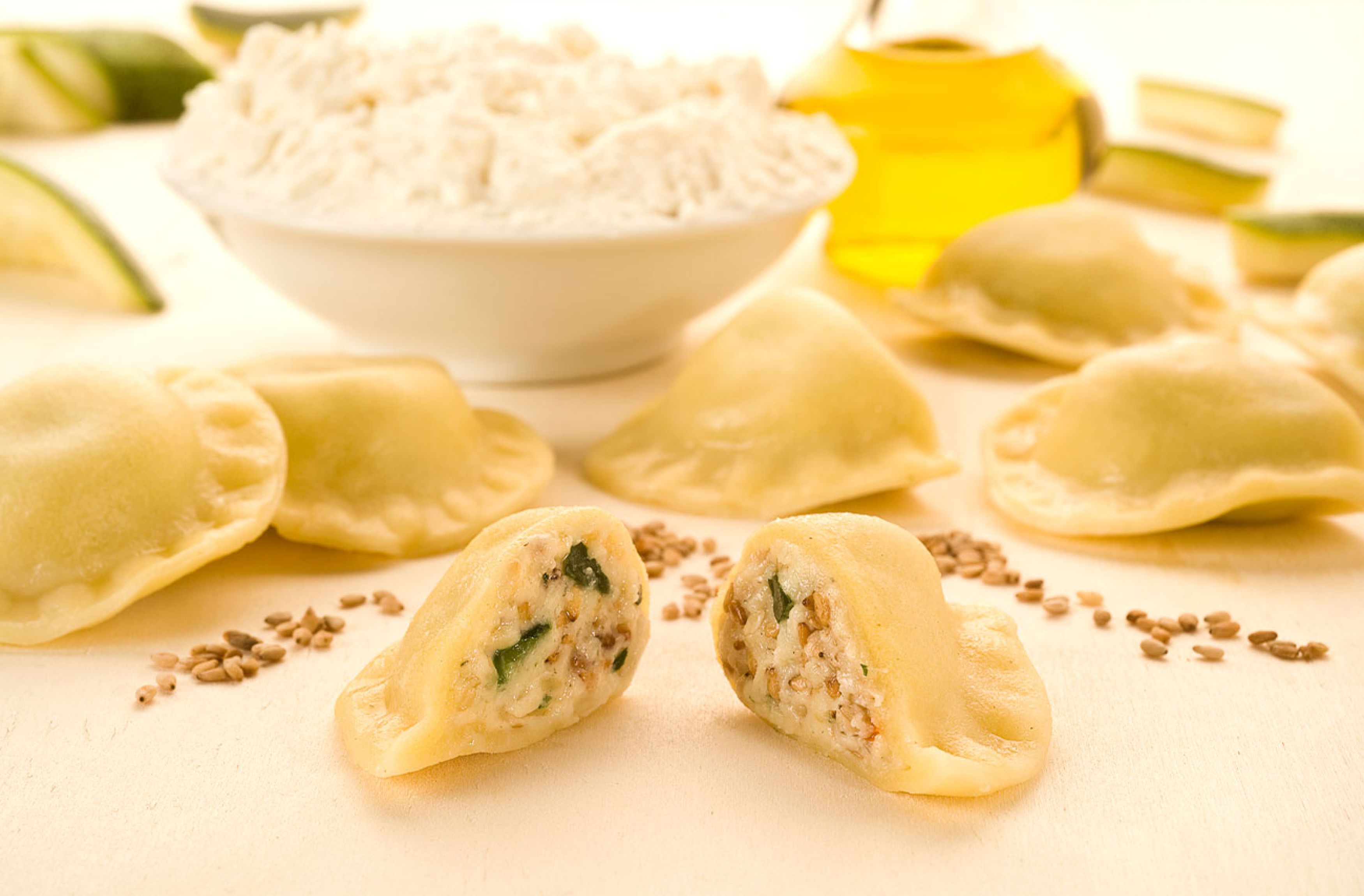 Mit einer cremigen Füllung aus Zucchini, Ricotta, geröstetem Sesam und feinen Gewürzen