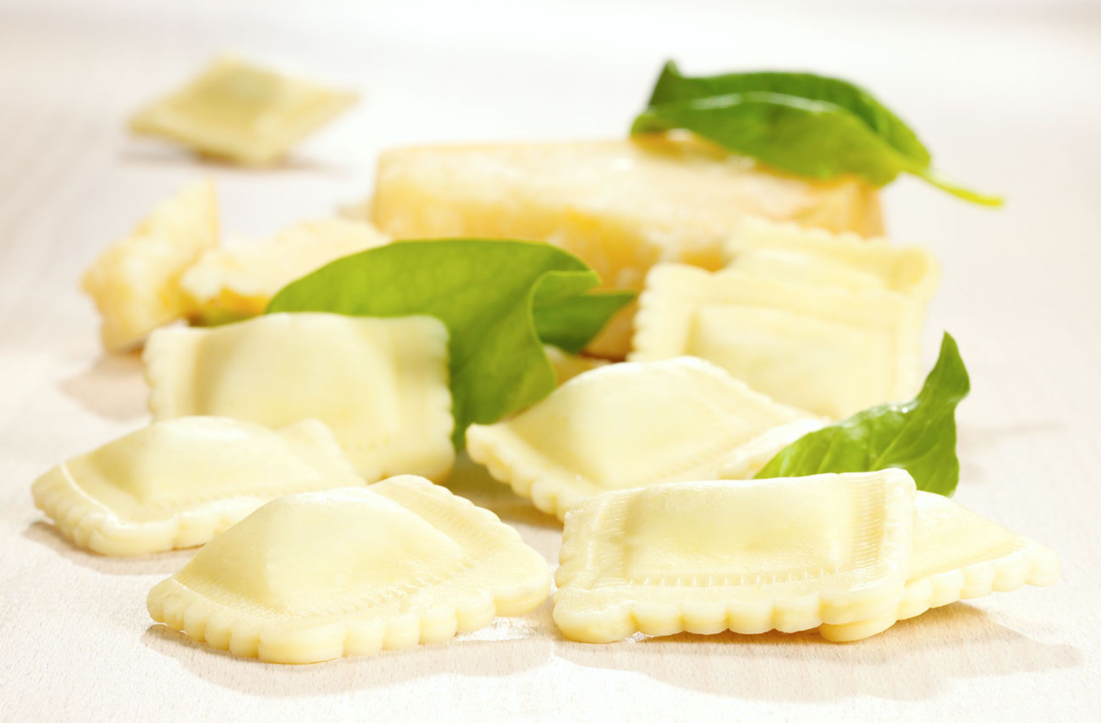 Gefüllte Nudeltasche mit einer feinen Käse-Spinatfüllung