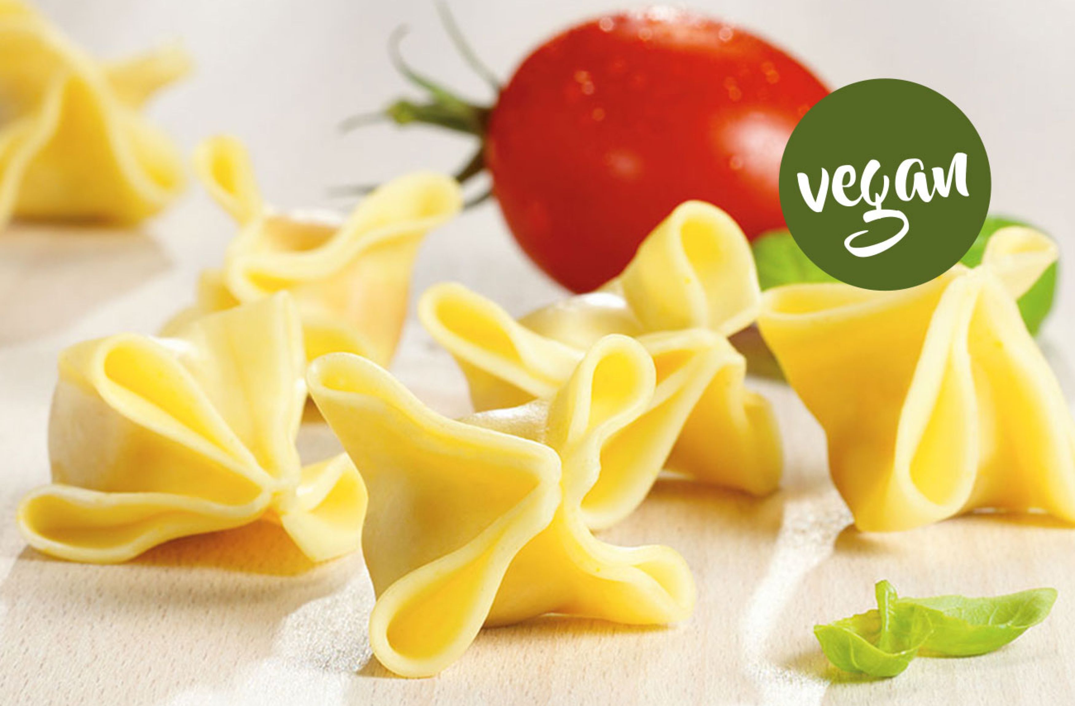 Nudelteigblüte mit einer feinen Tomaten-Basilikumfüllung