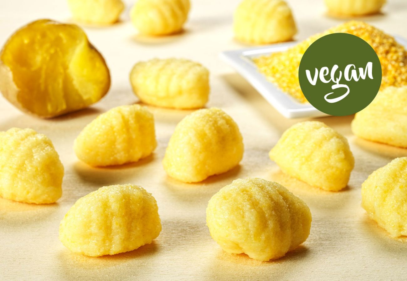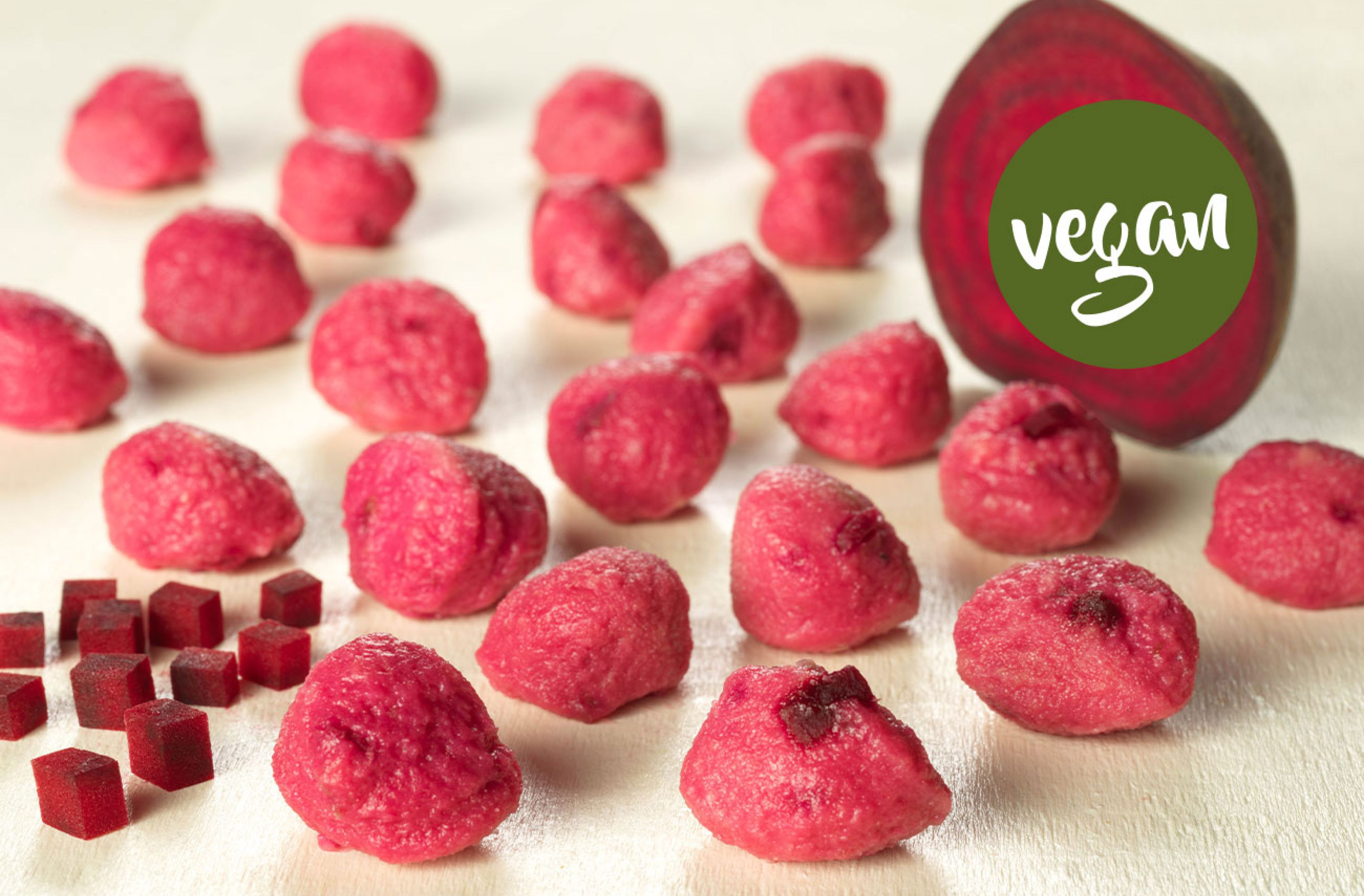 Zarte Kartoffelteigklößchen mit stückiger Rote Beete
